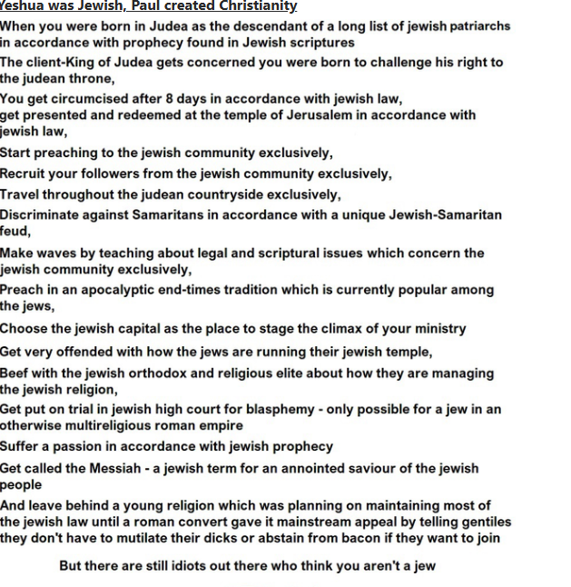 I am beyond sick of people who think they can just chuck out the Old Testament. They claim Jesus got rid of the old laws... I'm sorry, where the fuck does it fucking say that anywhere whatsoever? It says the exact opposite. "Not a jot or tittle is changed until heaven and earth disappear." That means the old law will never change and is still valid. Jesus said this. Why the fuck would he say that if he was changing it? What, so God was wrong in the Old Testament? How the shit can God be wrong? The Old Testament doesn't align with their fantasy of a hippie Jesus, so the only thing they can do is pretend it doesn't matter anymore. Which brings me to my next point, hippie Jesus. I'm beyond sick of this hippie Jesus crap. They act like all Christianity is just love thy neighbor, that's it. Wrong as fuck. Jesus was 100% okay with slavery, for one. Oh you think he wasn't? Then why didn't he condemn it? Ephesians 6:5 Why does their precious New Testament say "slaves obey your masters even the cruel ones" If you're going to ignore everything about the bible except what you like, then why do we need the bible at all? Better yet, why do we even need Jesus at all? The only "record" of him existing at all is the bible, so throw that out and why even think Jesus existed in the first fucking place. It's all just so stupid. I'm so tired of these people pretending Christianity is just this lovey dovey nice fun hippie kumbaya thing. If it was, and has been the dominant religion on the planet for millennia, then why the fuck is the world so fucking fucked? Because it is a trash ideology. If you want to believe in hippie dippie love thy neighbor stuff, cool. Christianity is not for you then, it's just called being a good person. Cherry picking the bible for parts you like about hippie Jesus and tossing out the inconvenient parts is so stupid and dishonest. Westboro Baptist are actually some of the "truest" Christians out there, because at least they are in line with the bible. "But they're so vile!" Yeah, exactly, so is the bible. You're so close to getting it. The liberal progressive churches are in such conflict with the bible it's ridiculous. Particularly the Talrico guy. It's like they just make up whatever feels good to them and that's what Christianity is. No. Christianity is the bible. It's all or nothing I'm afraid. I'm just tired of the cognitive dissonance. And tired of the "Jesus's" teachings people. Jesus is nothing. Worthless. A made up character. Captain Jean-Luc Picard of the Starship Enterprise is 100x the role model Jesus is, if we're going off fictional characters. People should be following him if anyone. I'm especially tired of people claiming to be atheists yet going to bat for Jesus and Christianity as if it some wholey good thing that is good for society. It's not. The answer is not to try and get people to be progressive hippie Jesus followers, it's to free peoples' minds and make them realize they don't need any of this bullshit to just be good people, and love their neighbors. It's called being social animals and having a need to cooperate with each other. Look at elephants, do they have an elephant Jesus? No, but they get along just fine. We can be like that too.